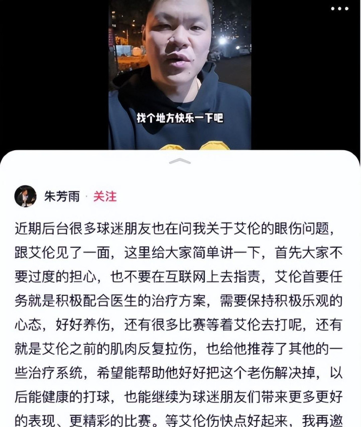 朱芳雨还跟球迷们报平安,说郭艾伦恢复得不错,视力不会受影响,大家不用太担心。